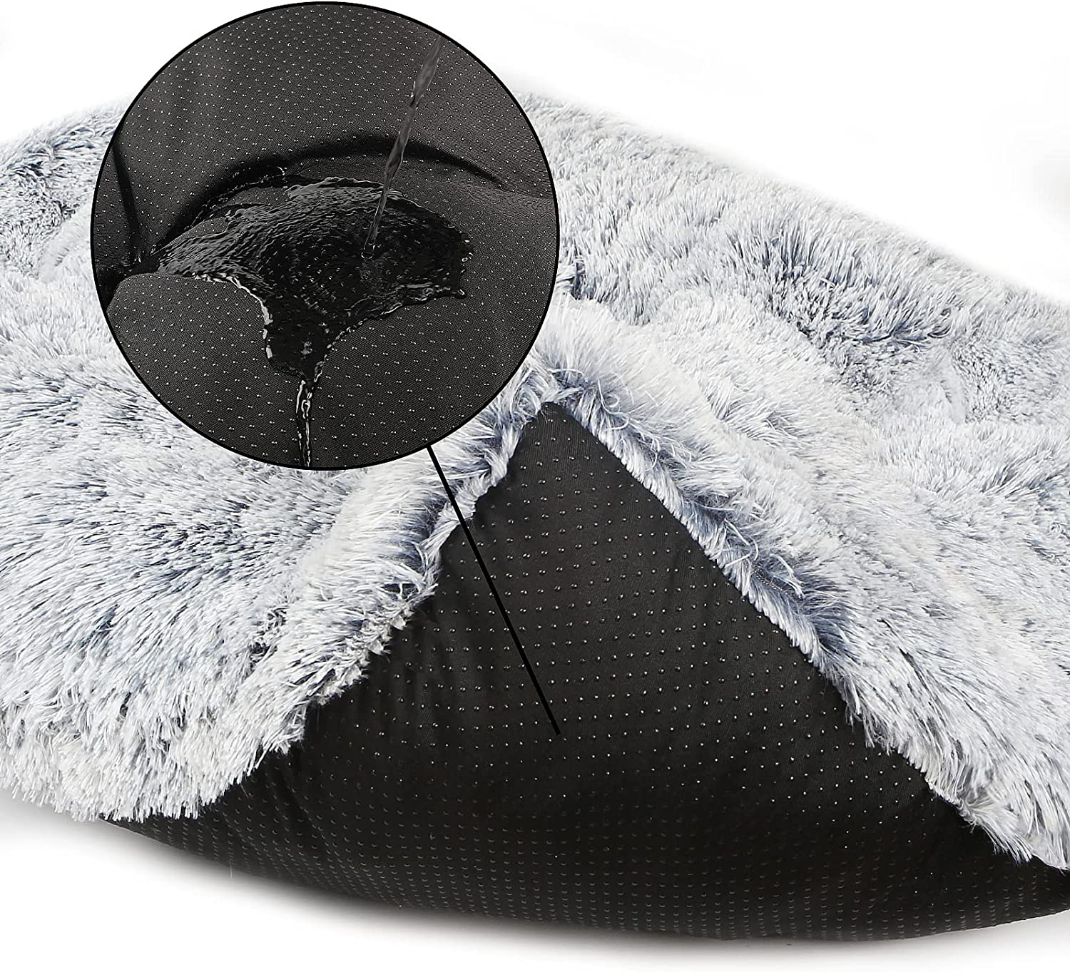 - WATERPROOF FILM and NON-SLIP BOTTOM: There is a waterproof film between the fleece surface and the bottom fabric that makes the dog bed waterproof. However, the faux linen on the side is not waterproof. A non-slip point on the bottom is not easy to slide, and keeps your dog bed steady.
